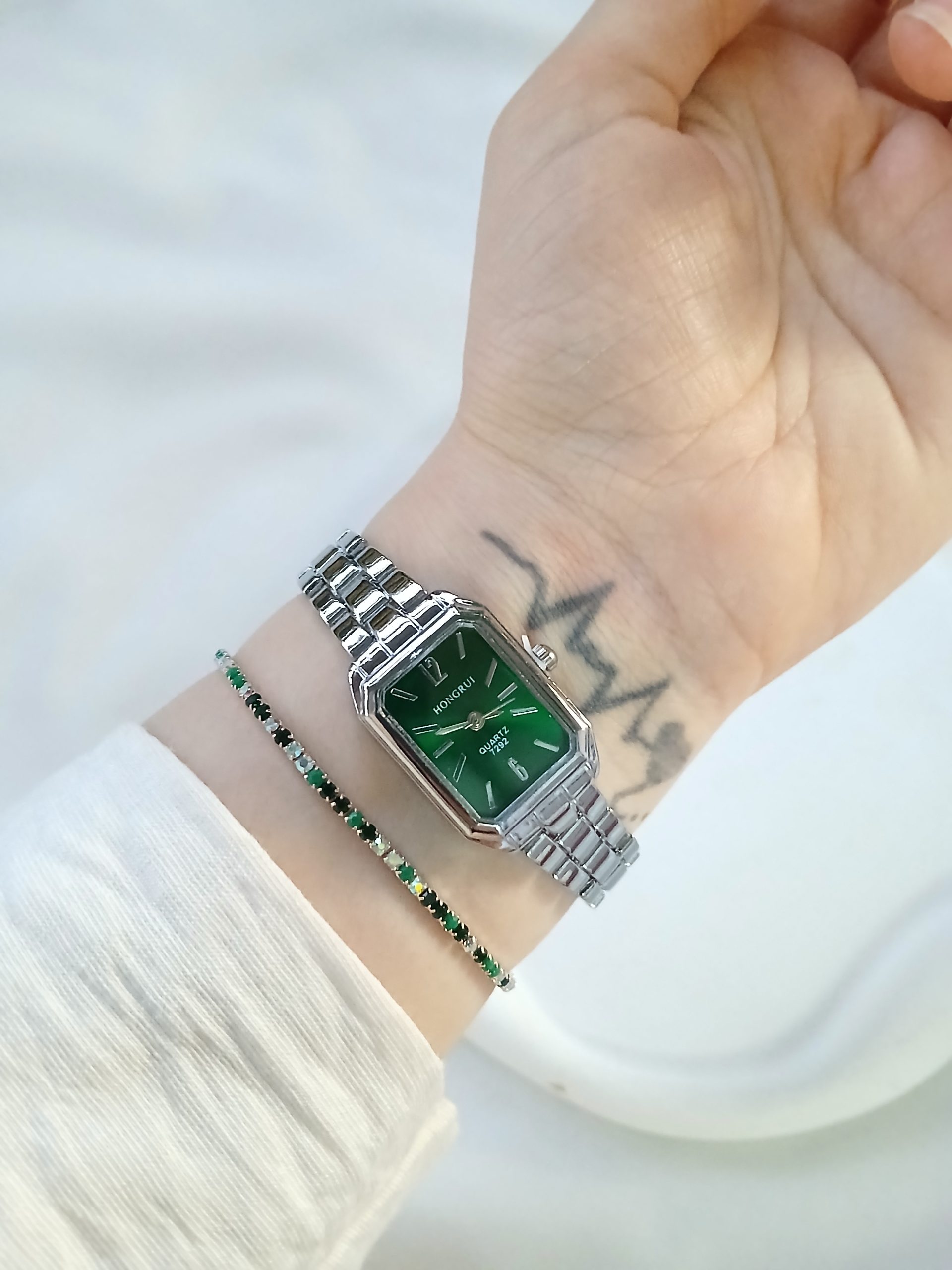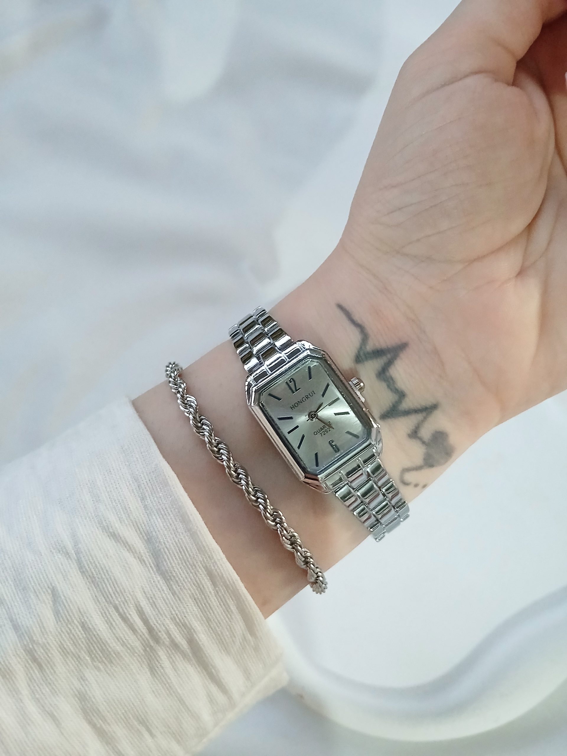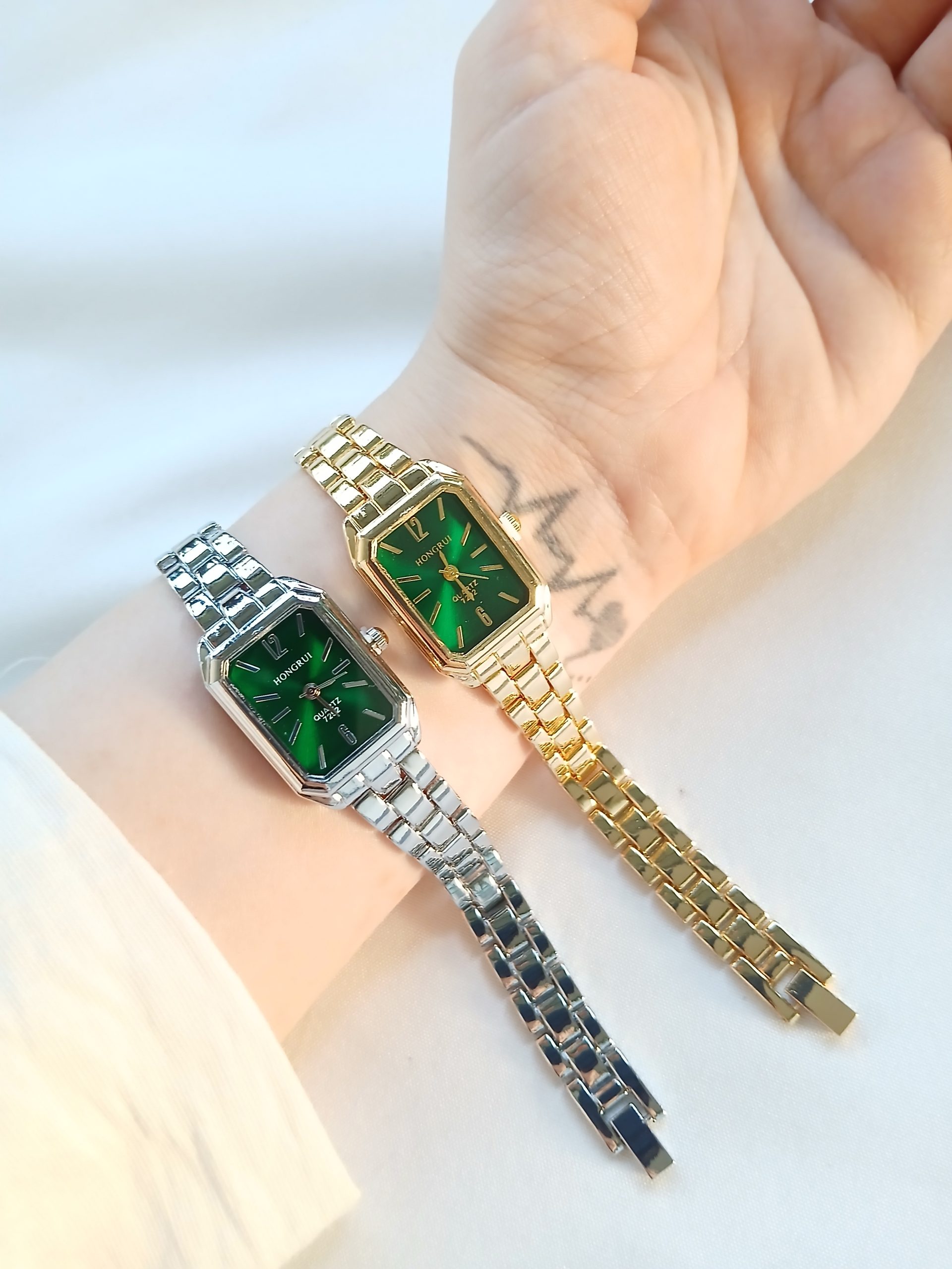 ساعت بند کارتیر مستطیلی سایز صفحه 1در2سانت دور مچش19سانت بند قابل کوتاه شدن باتری و موتور قابل تعويض