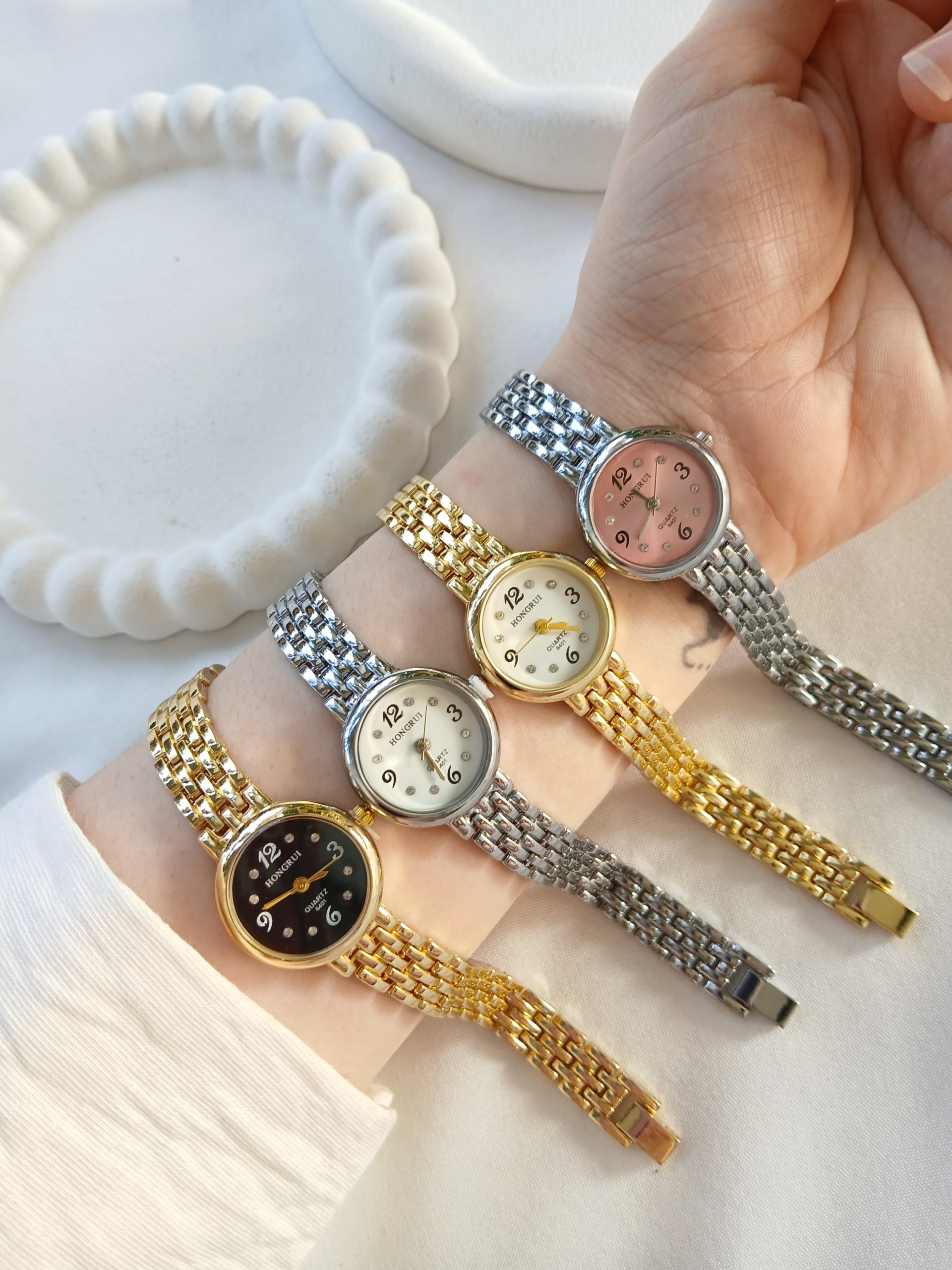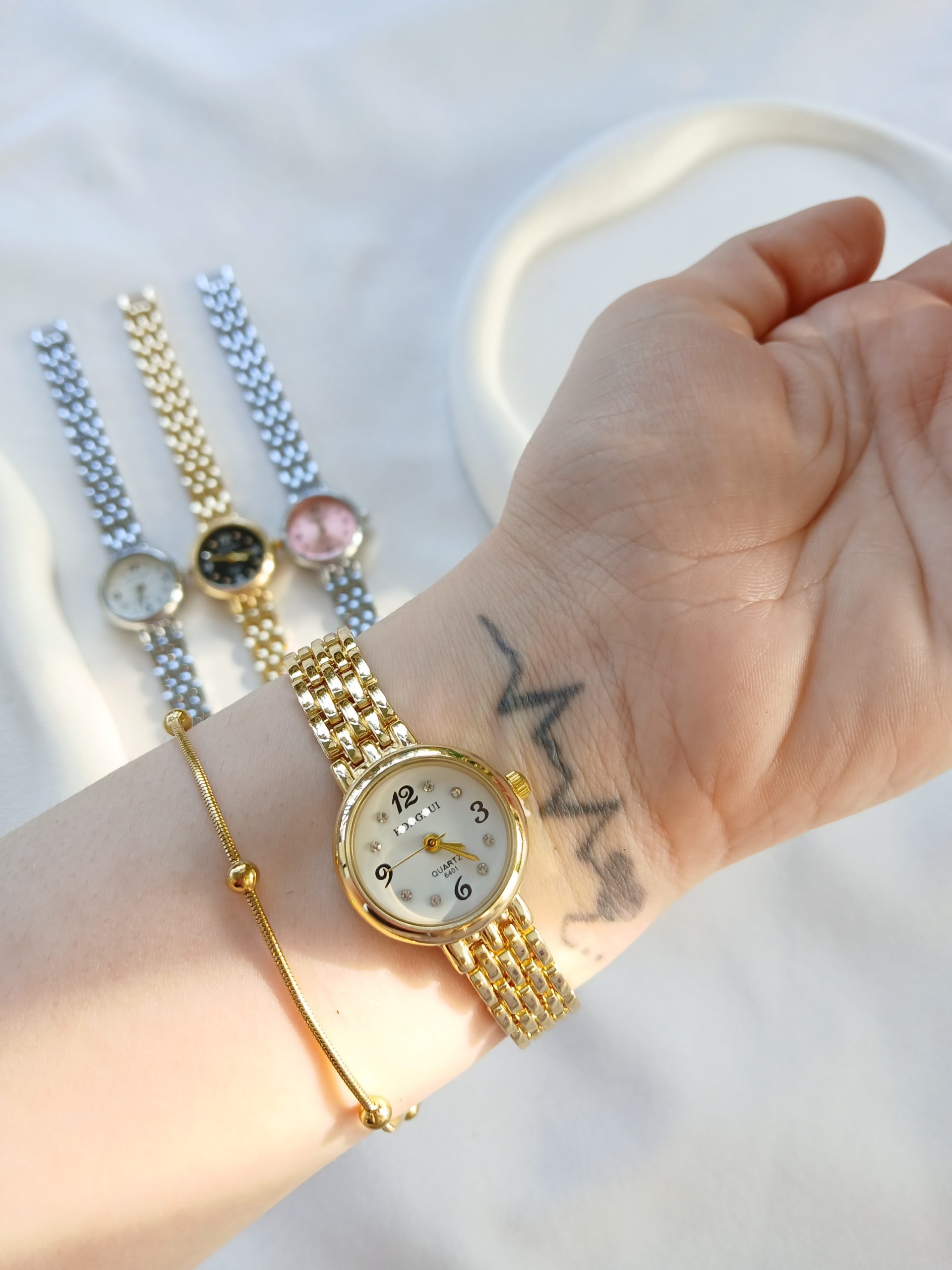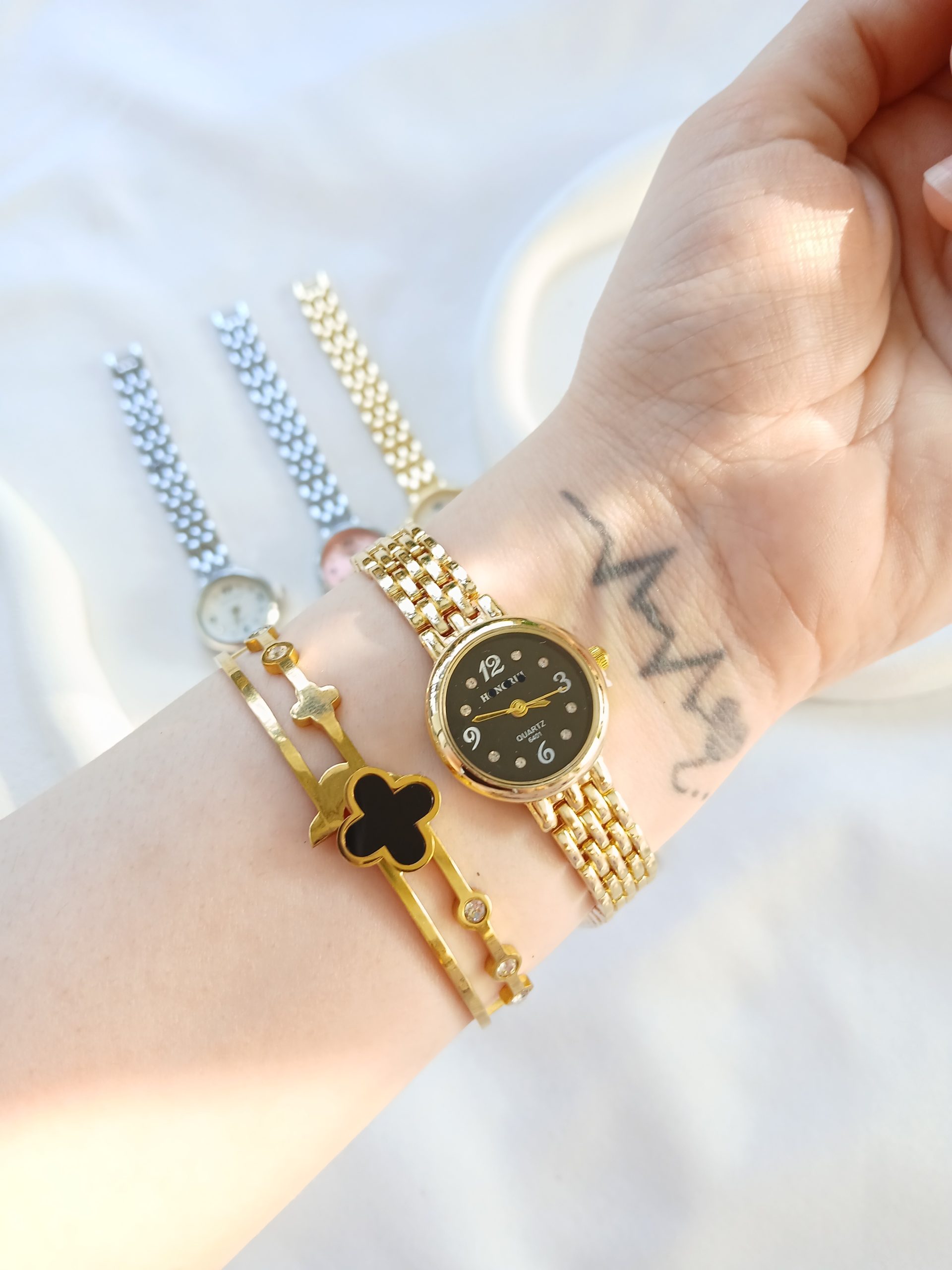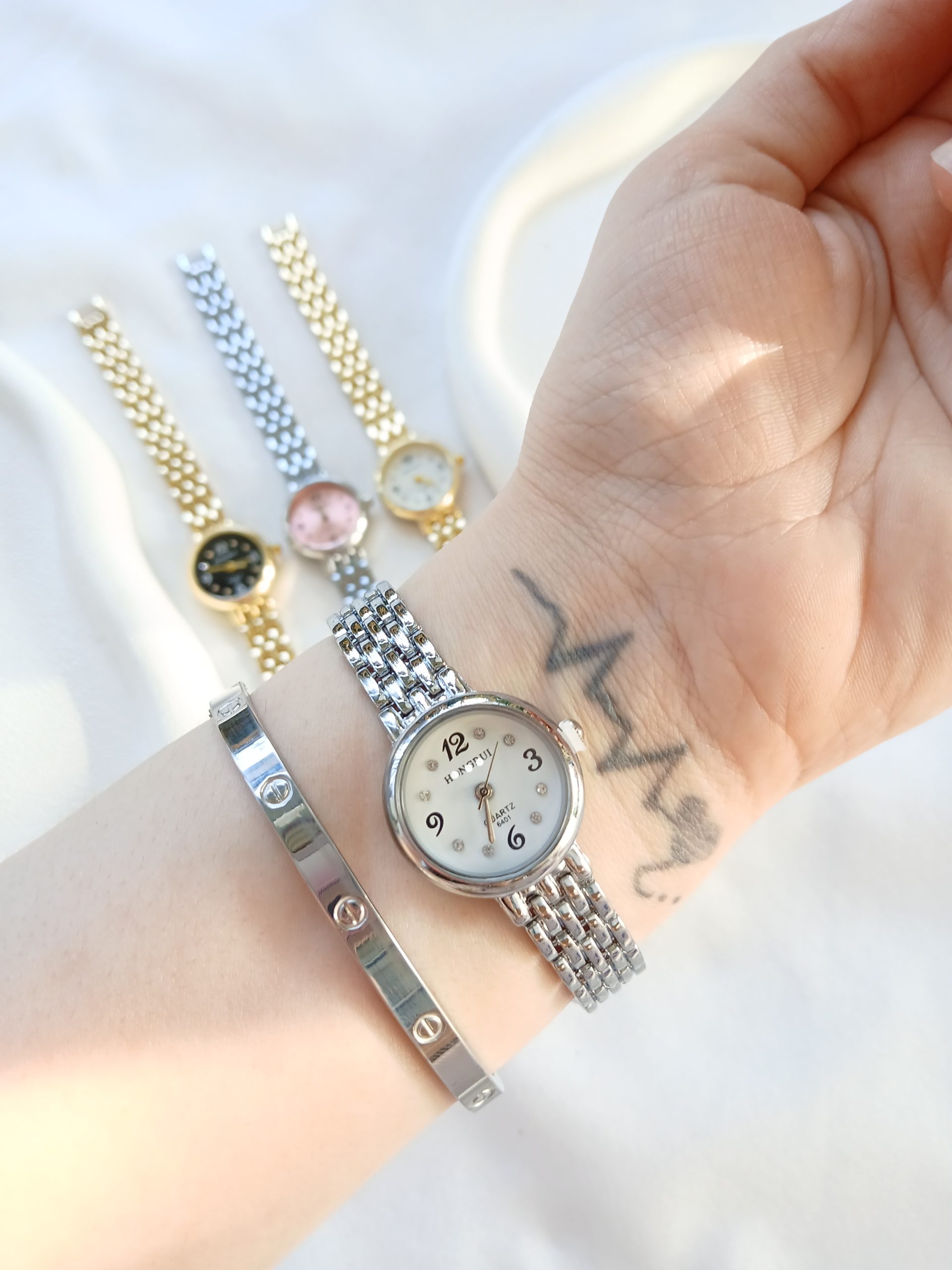 ساعت زنونه هانگری ✅️ سایز صفحه حدودا 2سانت✅️ دور مچش19سانت ✅️ بند قابل کوتاه شدن ✅️ باتری و موتور قابل تعويض✅️ قفل:کتابی✅️